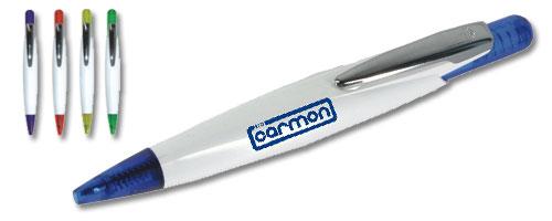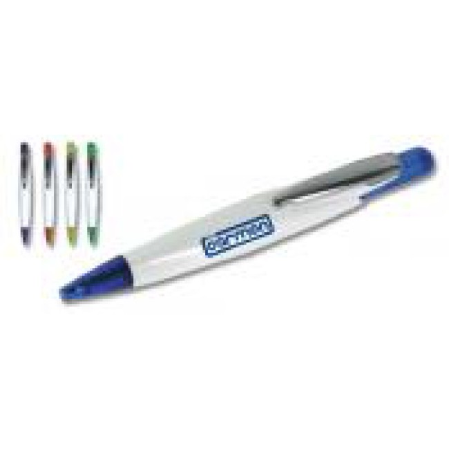 Penna sfera scatto pl. ferm. metallo cromato fusto bianco rif.verdi refil nero