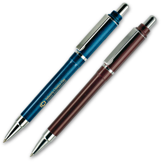 Penna sfera a scatto fusto in plastica colorata metallizzata con refil blu