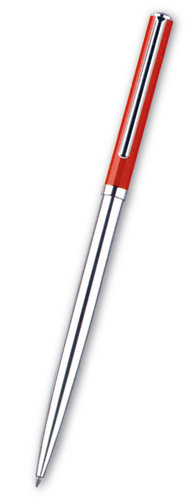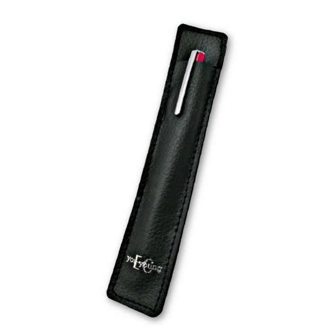 Penna a sfera "You Young" slim a rotazione, fusto metallo cromato e laccato. Refil blu. Confezione in similpelle nero "You Young".