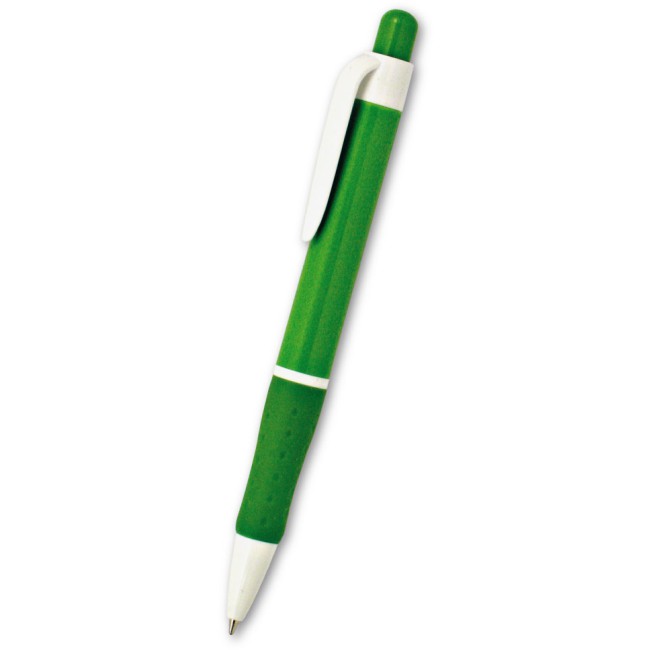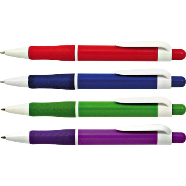 Penna a sfera a scatto impugnatura in gomma, fusto colorato. Meccanismo a scatto. Refil nero 1.0 mm.