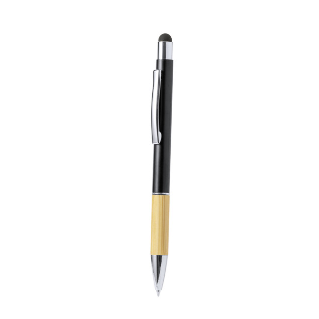 Penna touch in bambù e alluminio con meccanismo rotativo e clip in metallo