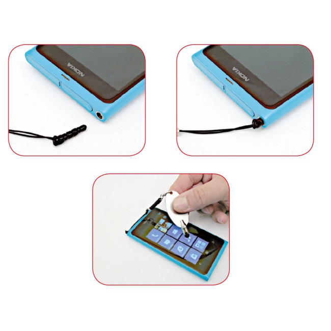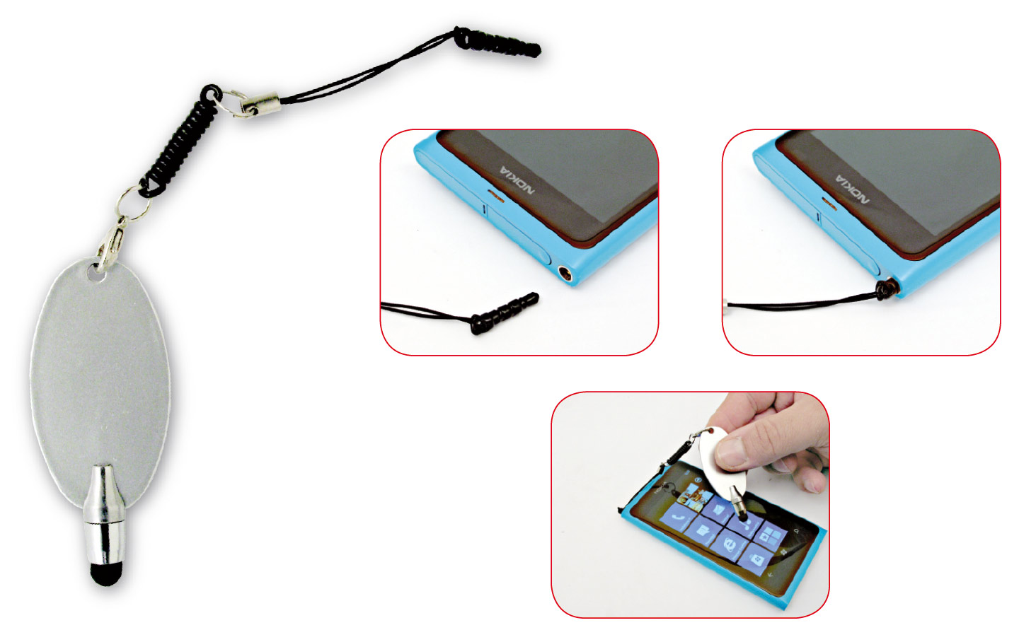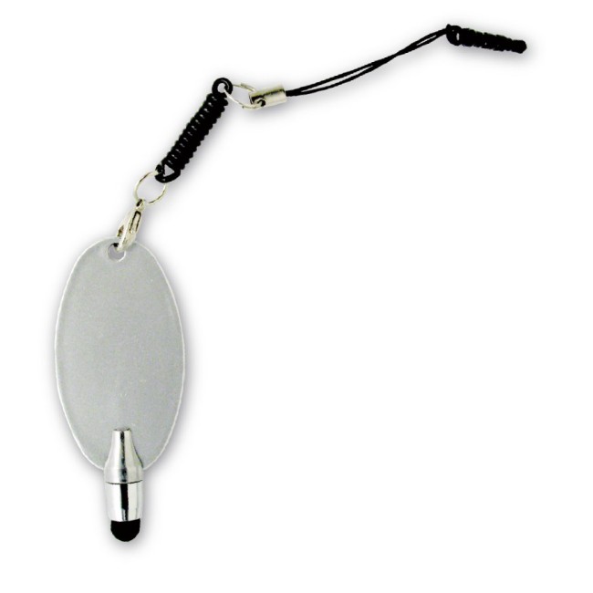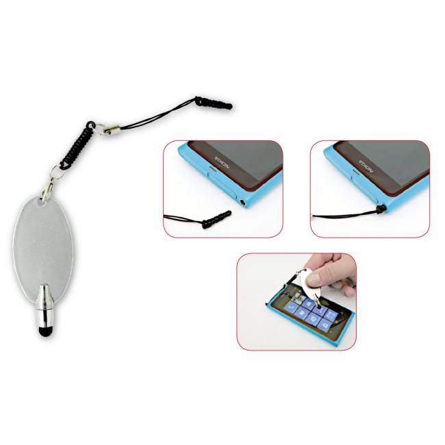 Touch screen, in plastica color silver, con molla estendibile, si inserisce nella presa delle cuffie del telefono.