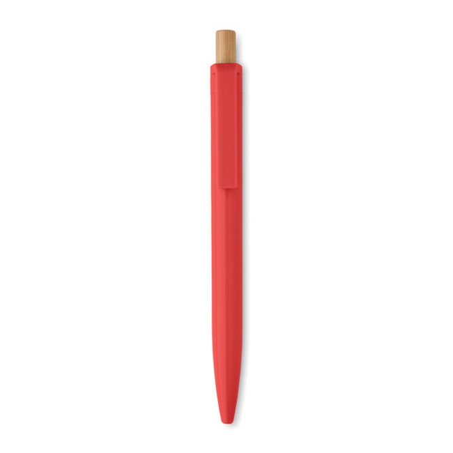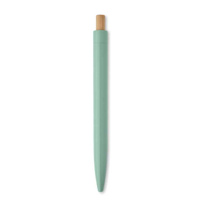 Penna a sfera a pulsante in ABS riciclato con pulsante in bamboo. Inchiostro blu.