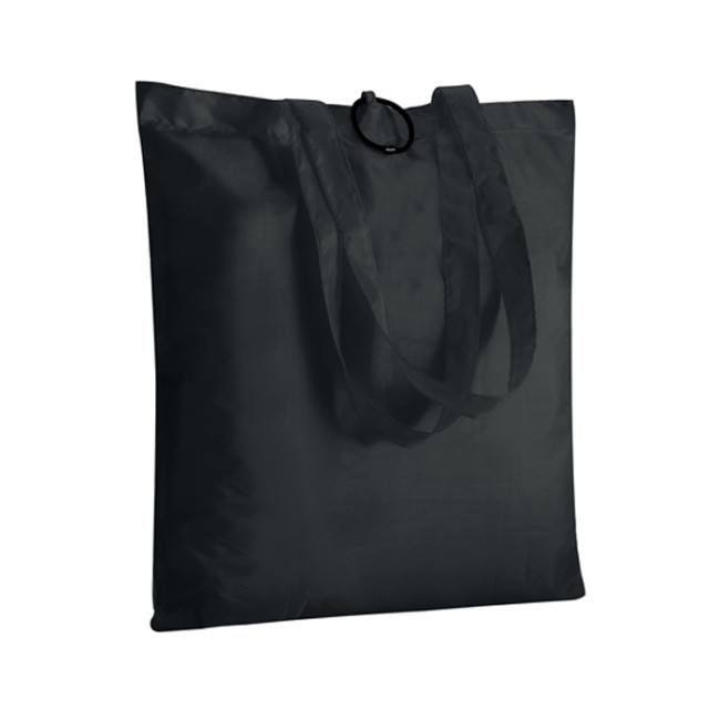 borsa shopping nylon 190T ripiegabile con elastico manici lunghi tecnica di stampa consigliata: serigrafica - sublimatica (BI)