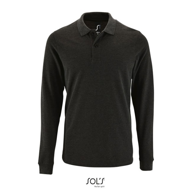 SOL'S PERFECT LSL MEN, POLO DA UOMO A MANICHE LUNGHE IN PIQUÉ, 100% cotone pettinato, 148 Heather oxblood - 348 Charcoal melange: 60% cotone polsini a costine 1x1, maniche lunghe, abbottonatura a 2 bottoni, nastro all'interno del collo. Per informazioni sulla corrispondenza delle taglie, consultare la tabella delle taglie nella sezione documentazione del prodotto.