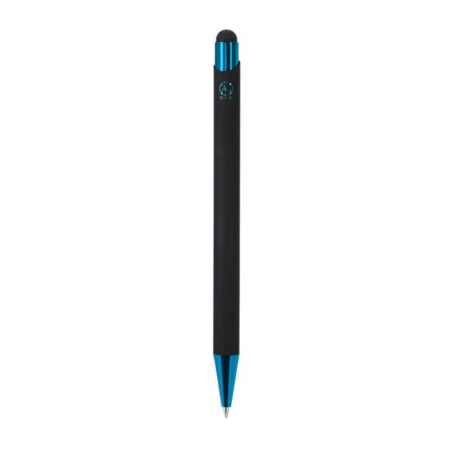 Penna puntatore a pulsante a pulsante realizzata in alluminio riciclato. Pulsante, clip metallica e punta con finitura lucida. Corpo rifinito in gomma, appositamente progettato per la marcatura laser con effetto specchio. Alluminio riciclato distintivo sulla sommità della penna. Carica Jumbo e con inchiostro blu.