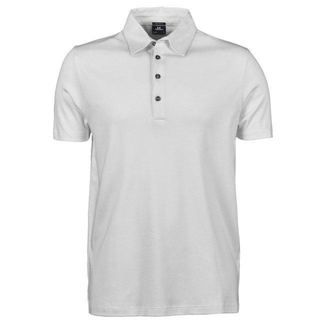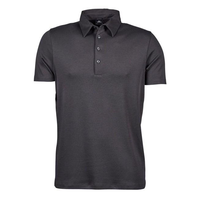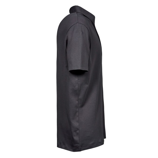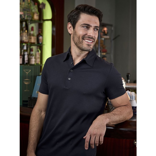 100% cotone pima ring-spun. Polo a maniche corte set-in. 4 bottoni perlati color antracite, colletto dello stesso tessuto, vestibilita' moderna, nastro di rinforzo alle spalle, trattamento agli enzimi che dona al tessuto un tocco morbido. Struttura con cuciture laterali.