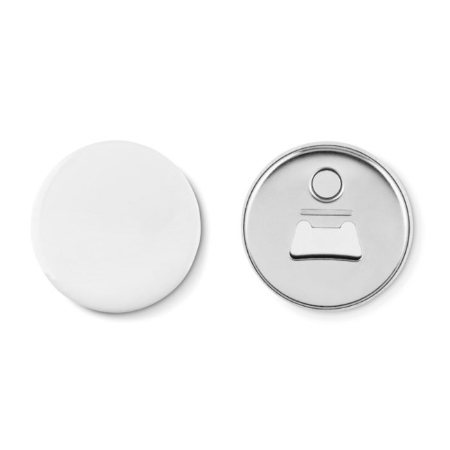 Spilla a bottone magnetica con apribottiglie. Ø5,8 CM. Interno in carta. In caso di ordine neutro l'articolo viene spedito smontato.