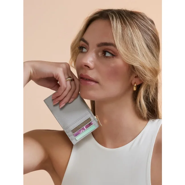 Porta carte in simil-pelle PU, caratterizzato da un design moderno e decorabile fronte/retro. Dotato di etichetta removibile TearAway, può contenere fino a 4 carte di credito. Le dimensioni sono di 12.5 x 7.5 cm, con un'area di stampa massima di 11x6 cm, rendendolo un accessorio pratico e personalizzabile.