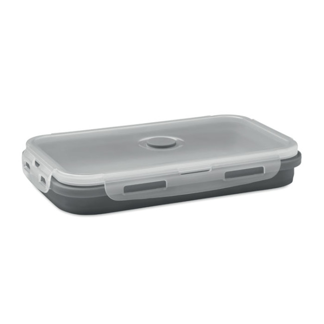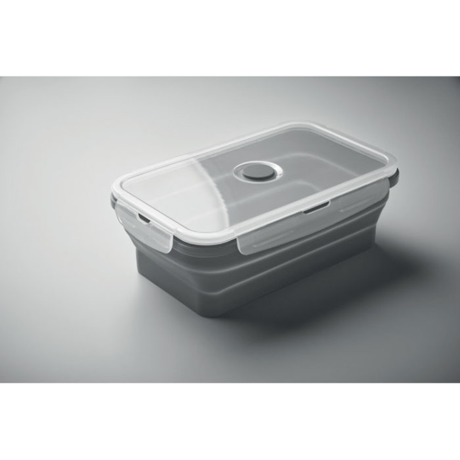 Portapranzo pieghevole in silicone, dotato di un coperchio in PP e una valvola per una chiusura sicura. Con una capacità di 1200 ml, è ideale per trasportare pasti in modo pratico e compatto. Non è personalizzabile.