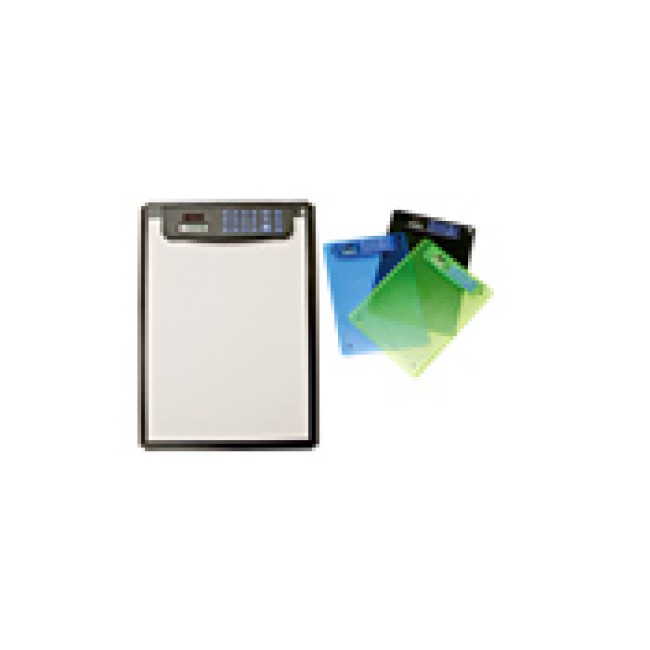 Portablocco in plastica trasparente con calcolatrice ed euroconvertitore. Confezione in scatoletta.