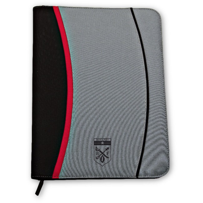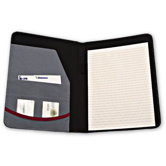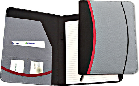 Portablocco wrc in tessuto bicolore grigio e nero finiture rosse con blocco carta a4 da 20 fg con tasche p.docum. confez.fascetta bianca