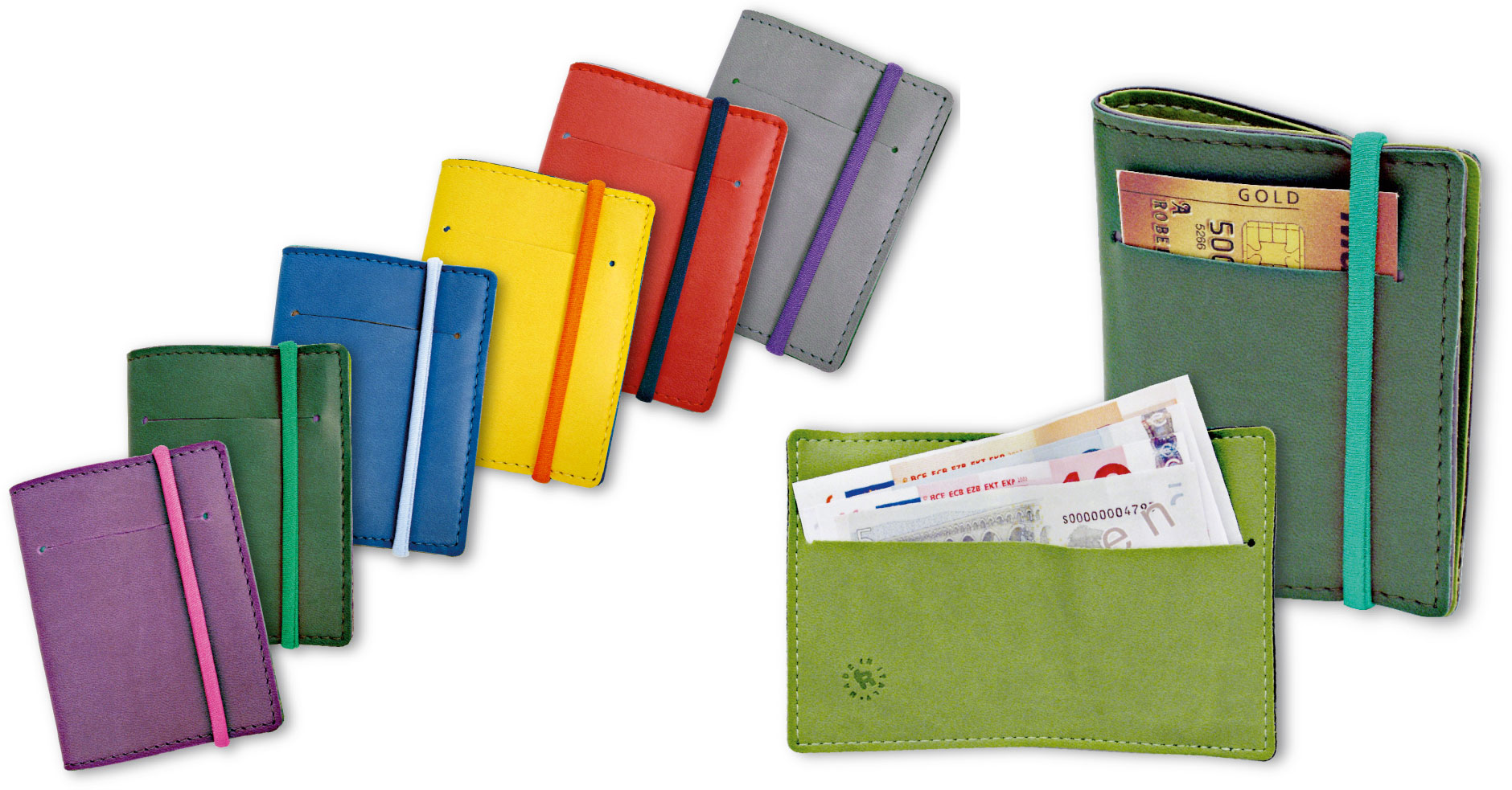 Portacarte di credito realizzato in vivella, disponibile in vari colori assortiti. Dotato di elastico blu e bustina in cellophane, questo accessorio è progettato per mantenere le tue carte di credito organizzate e protette. La sua struttura compatta lo rende ideale per l'uso quotidiano.