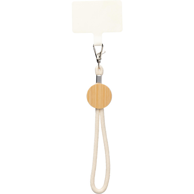 Portacellulare da polso in cotone D 16, parte tonda in bambù, include moschettone in metallo, adatto come abbinamento alla custodia del cellulare