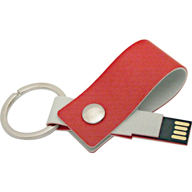 Reflexa® USB portachiave con memoria usb flash, da 8 GB di memoria. Materiale vivella bicolore, chip a scomparsa. Made in Italy. Astuccio in cartoncino.