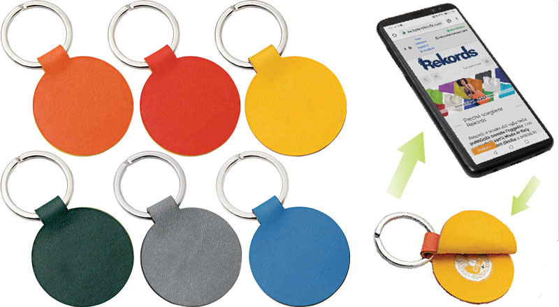 Portachiavi in Vivella Reflexa colorata con la possibilità dii inserire all'interno un NFC Tag.