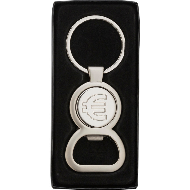 Portachiavi apribottiglia con portagettone, in metallo, confezione regalo