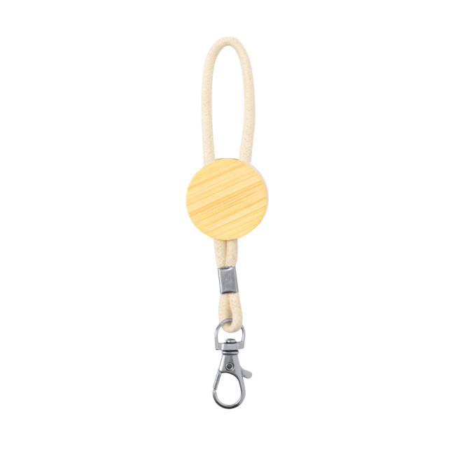 Portachiavi ecologico in bambù con moschettone girevole e corda di cotone