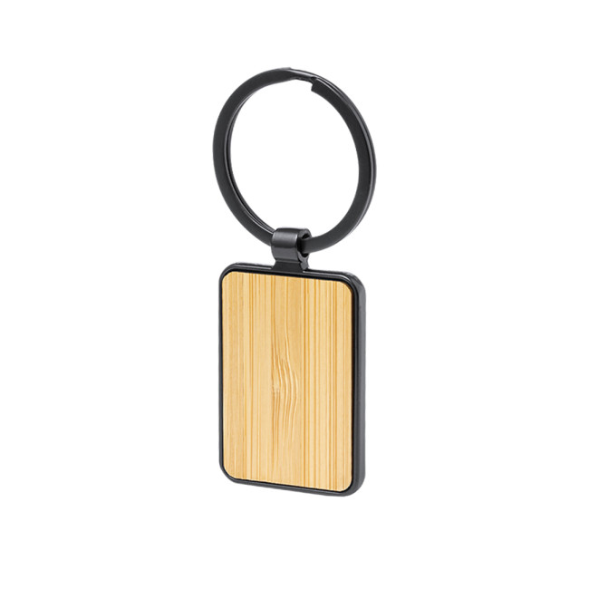 Portachiavi elegante in metallo nero lucido con faccia in bambù