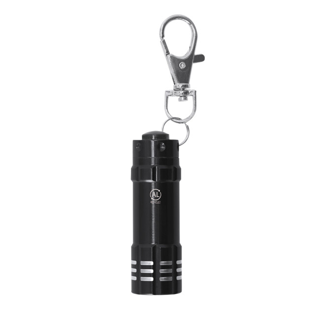 Portachiavi torcia in alluminio riciclato con 3 luci LED e moschettone