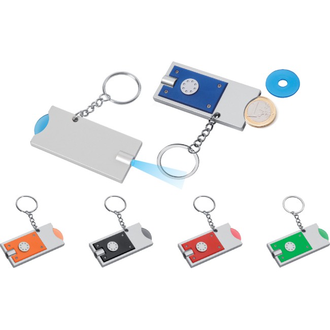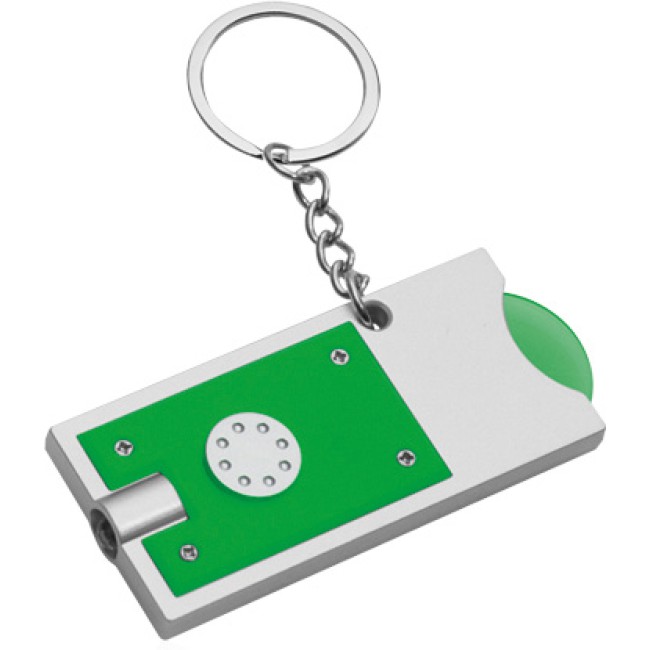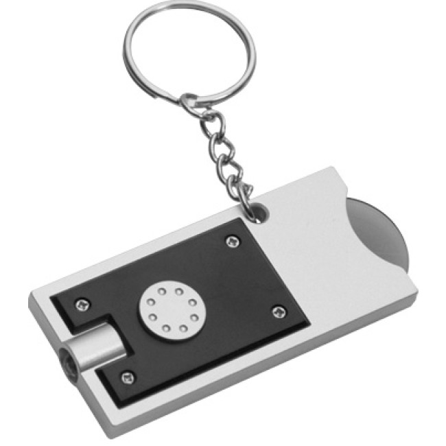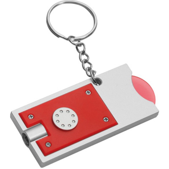 Portachiavi multifunzione, con disco in plastica per carrello spesa, luce led. Batterie incluse.