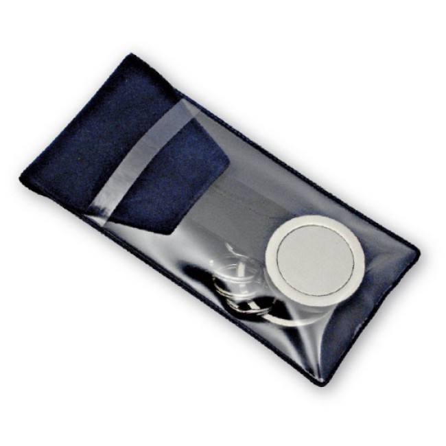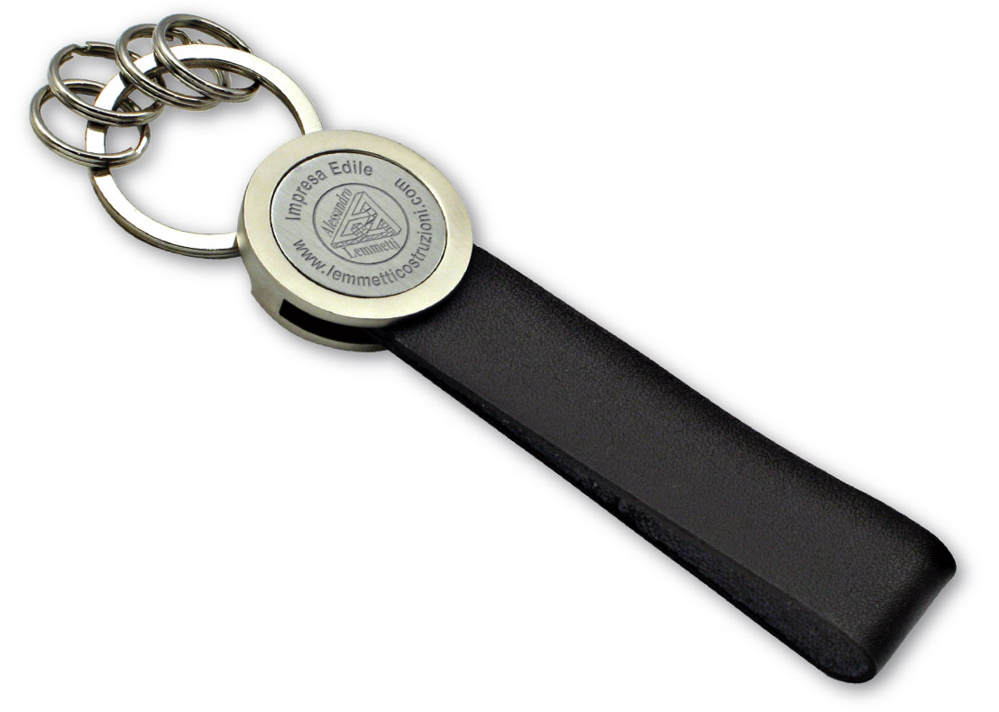 Portachiavi in similpelle nero e metallo con 4 anelli. Confezione in bustina.