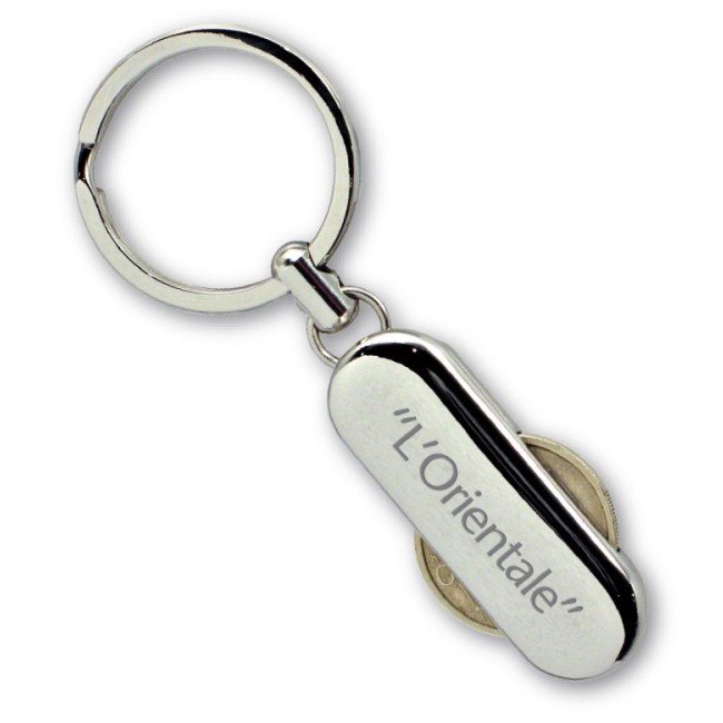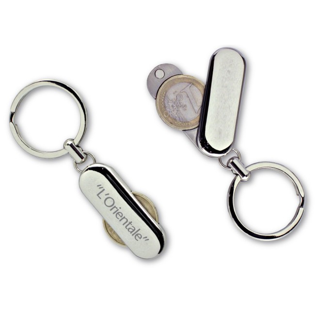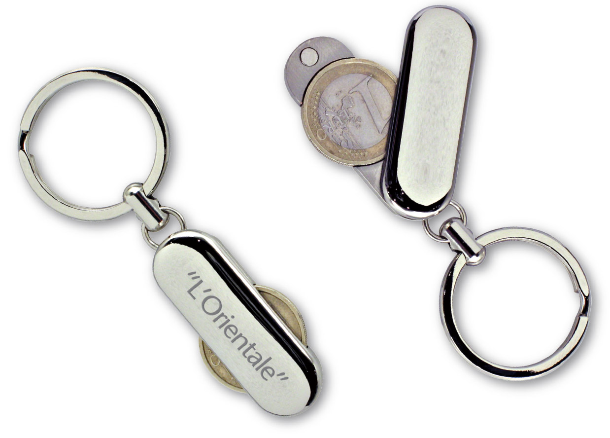 Portachiavi "You Young Coveri" con anello in metallo e porta euro. Confezione in cartoncino "You Young Coveri".