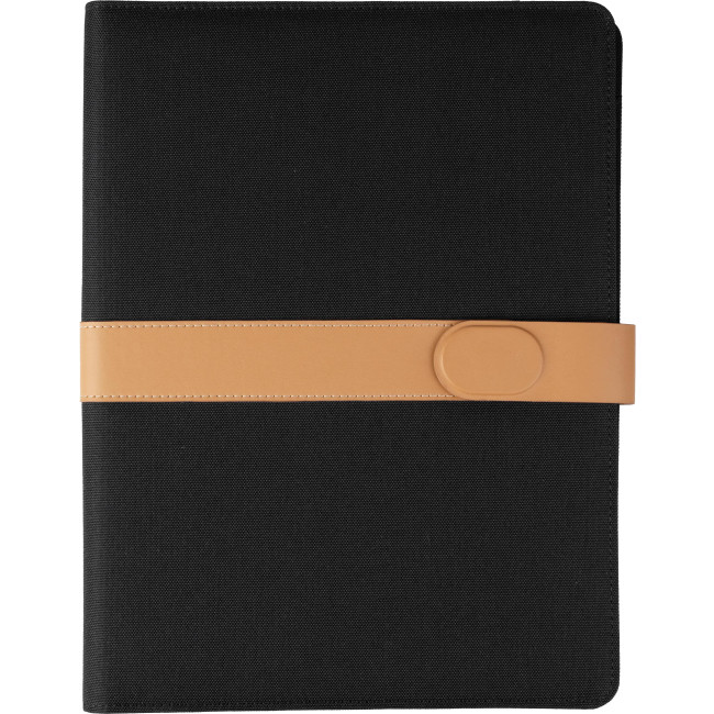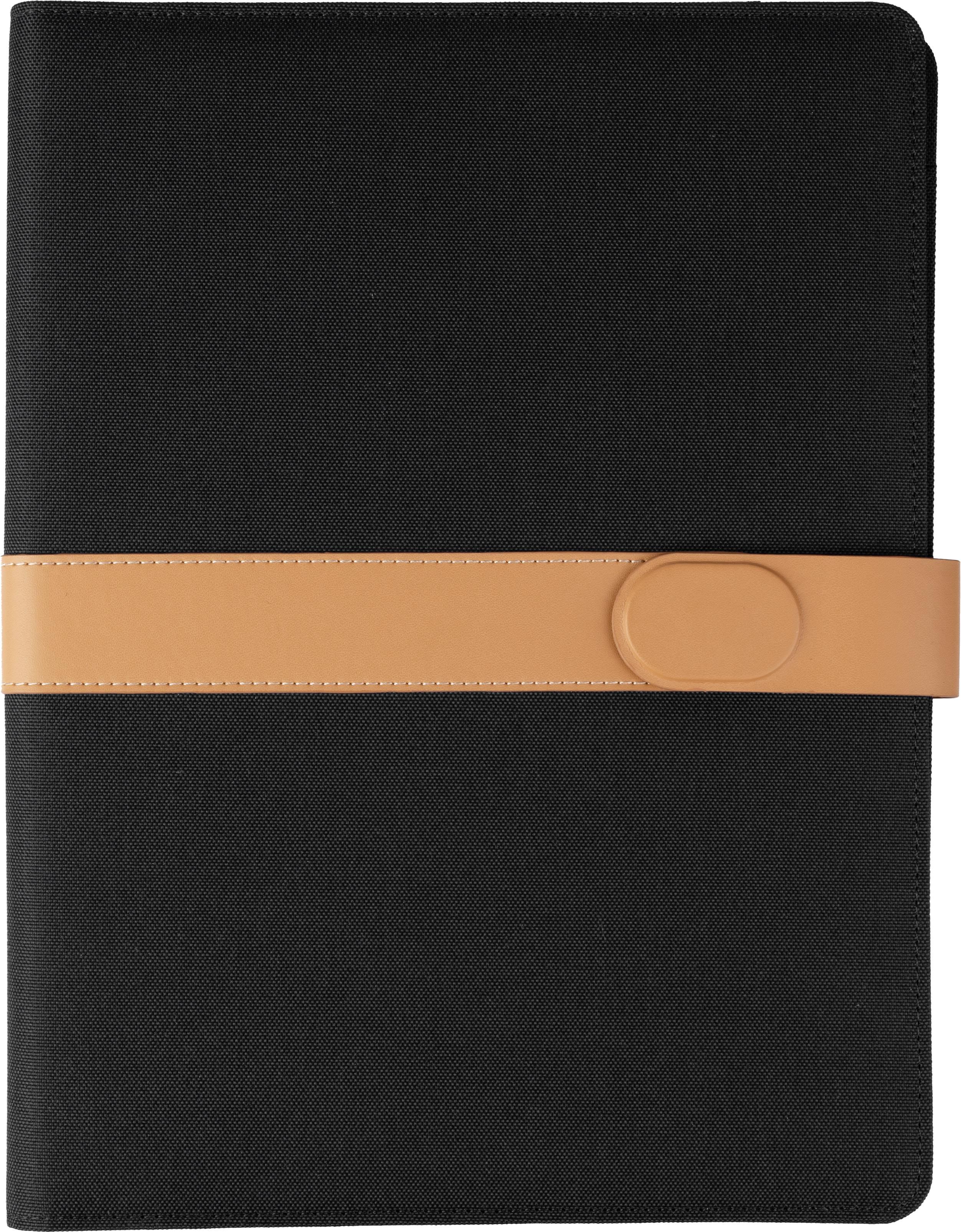Portadocumenti in rPET formato +/- A4, dettagli in PU sulla copertina, include notebook con 20 pagine a righe, carta 70 g/m², scomparti vari, passante per penna (non inclusa), chiusura magnetica, custodia singola in carta kraft