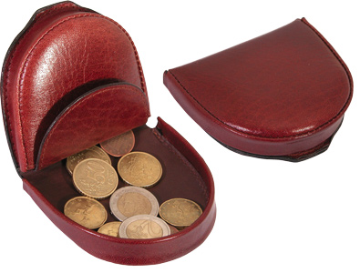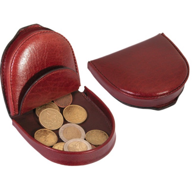 Portamonete a forma di tacco in pelle pieno fiore. Confezione in scatola.