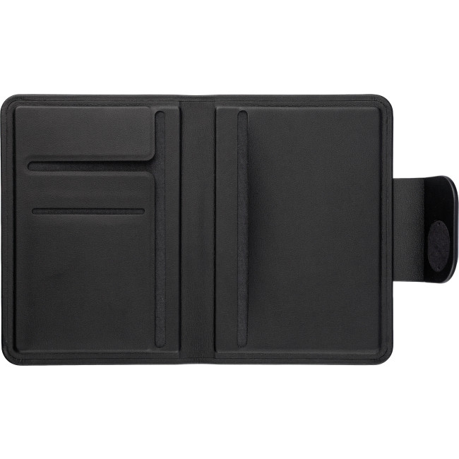 Portapassaporto rigido in PU riciclato, con chiusura magnetica e tracker Apple FindMy integrato nella linguetta, dispone di tre scomparti interni per organizzare documenti e carte. Utilizza "Impression" come nome del dispositivo e riporta il logo Impression per la registrazione dell'ID. Confezionato singolarmente in una scatola di carta kraft.