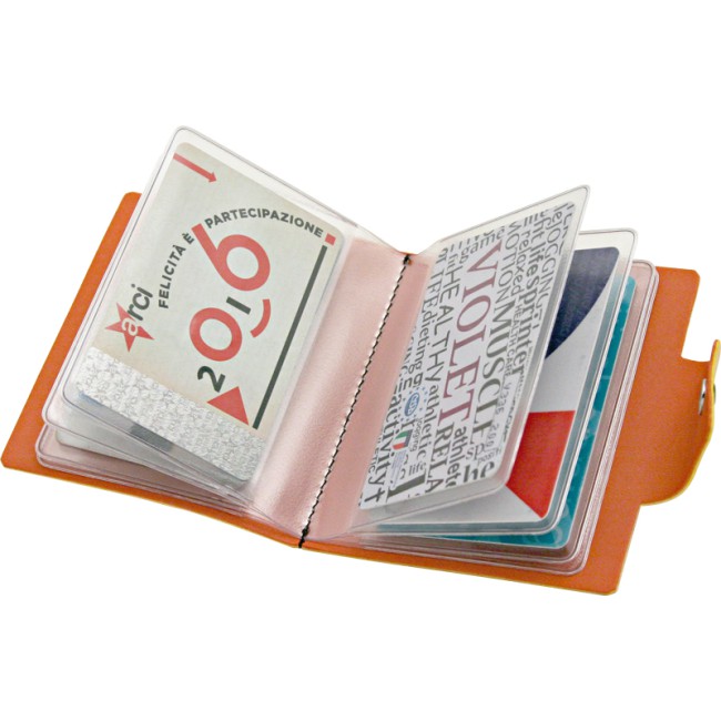 CARDHOLDER Porta tessere e porta carte di credito Reflexa, in Vivella bicolore con chiusura a bottone. All'intereno otto taschine di plastica trasparente.