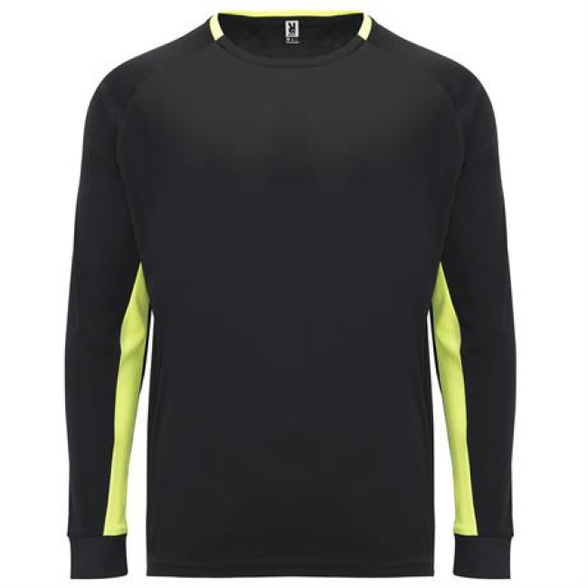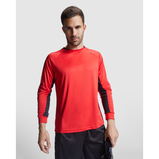 Maglia da portiere unisex.1. Manica lunga con gomiti imbottiti.2. Pannelli in contrasto all'interno delle maniche.3. Dettagli in contrasto sul colletto e sui polsini.