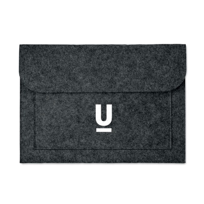 Portadocumenti o portalaptop da 15'''' in RPET feltro, spessore 2mm, con tasca frontale e chuisura con gancio.