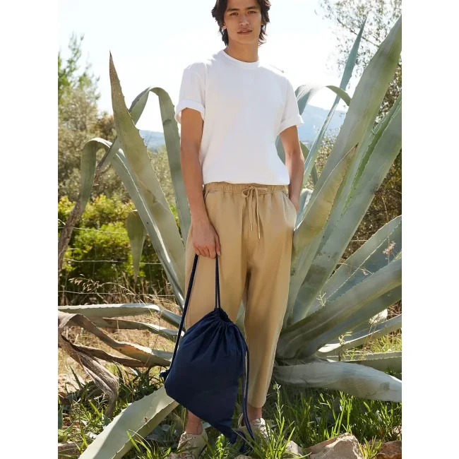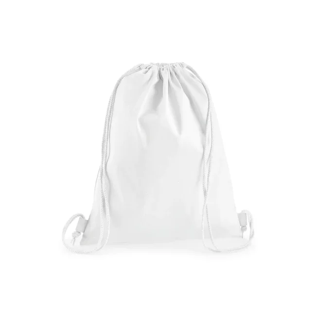 100% cotone. Sacca con chiusura a cordino. Etichetta removibile. Dimensioni: 37 x 46 cm, capacita': 12 litri, area stampabile: 30 x 32 cm.
