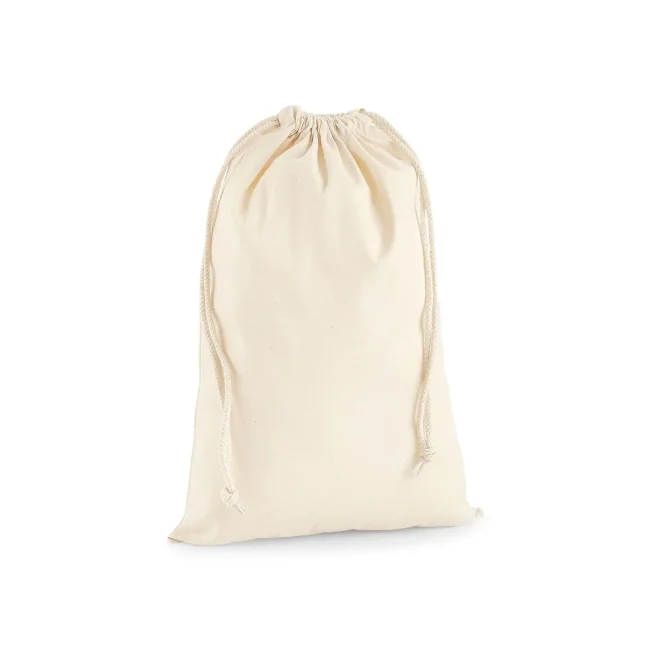 100% cotone. Sacchetti con chiusura a doppia coulisse, in cotone di alta qualità per una superficie si personalizzazione ideale per la stampa. Dimensioni: XS: 14x20.5 cm, cap. 1 lt. - S: 23x34 cm, cap. 3 lt. - M: 31x48 cm, cap. 8 lt. - L: 40x61.5 cm, cap. 15 lt. - XL: 49.5x75 cm, cap. 38 lt.