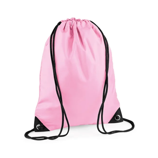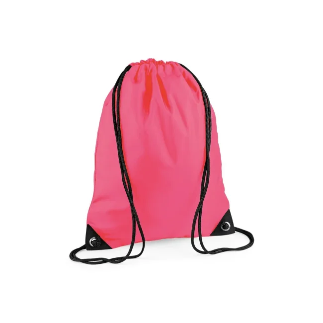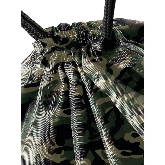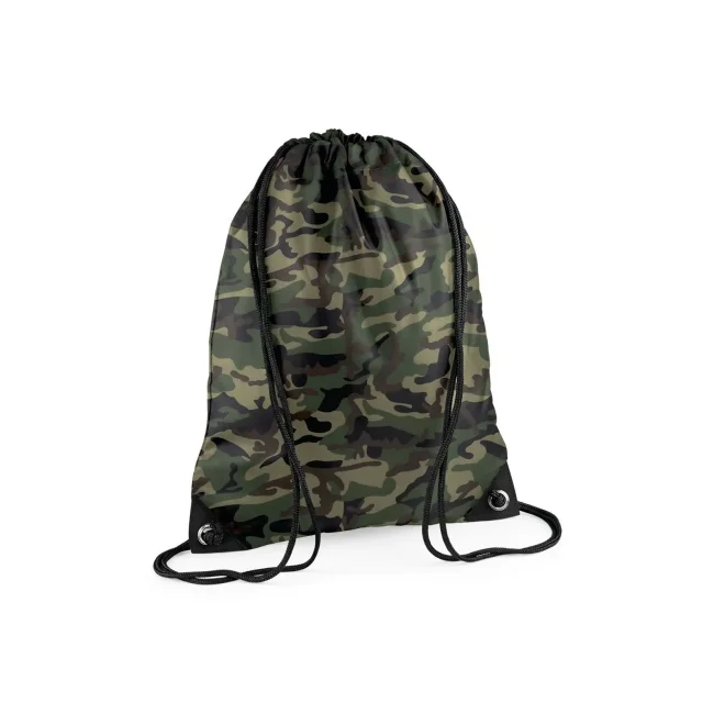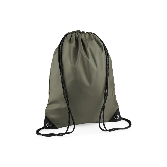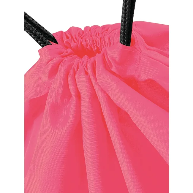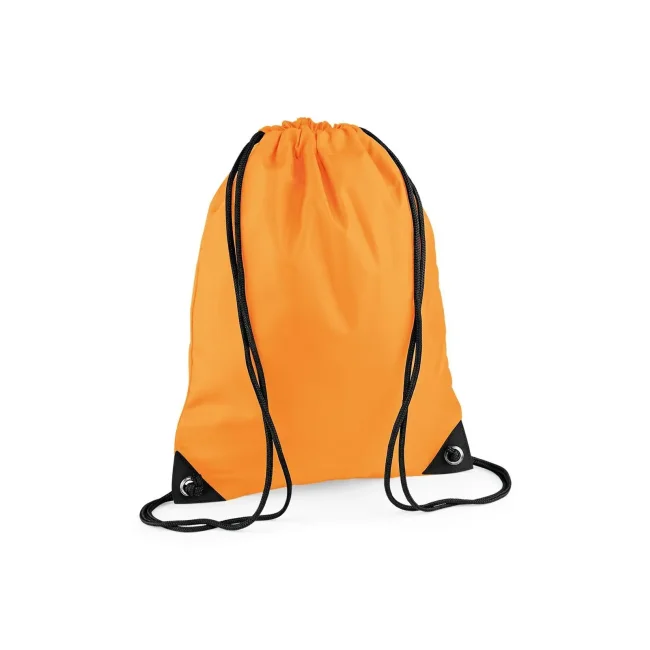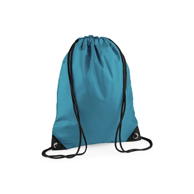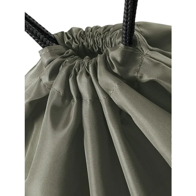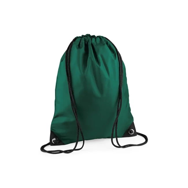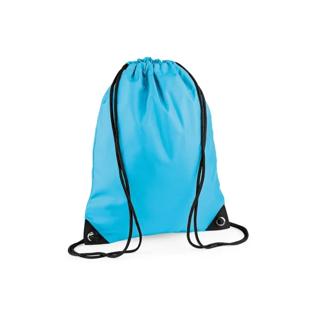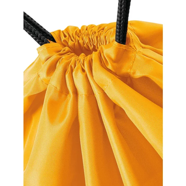100% poliestere 210d. Sacca con cordoncini. Tessuto resistente all'acqua 100 g/m². Angoli rinforzati con occhielli color canna di fucile (argento- nylon 210D). Etichetta removibile. Dimensioni: 33 x 45 cm, capacita': 11 litri, area stampabile: 29 x 26 cm.