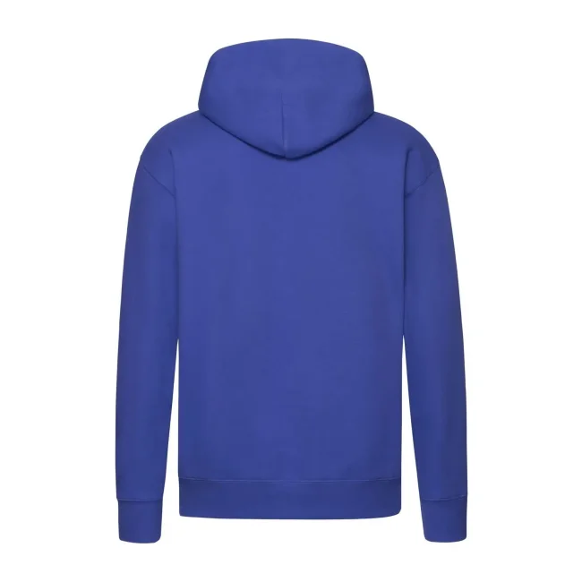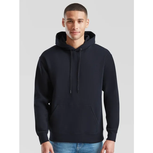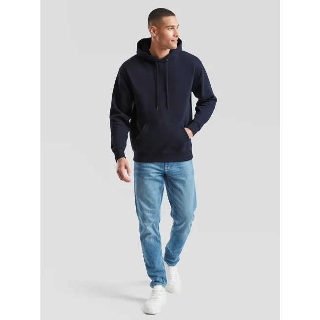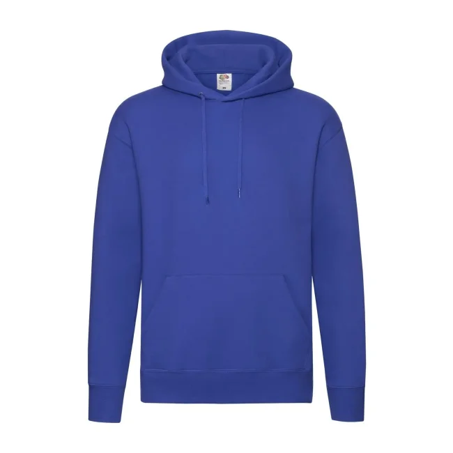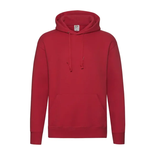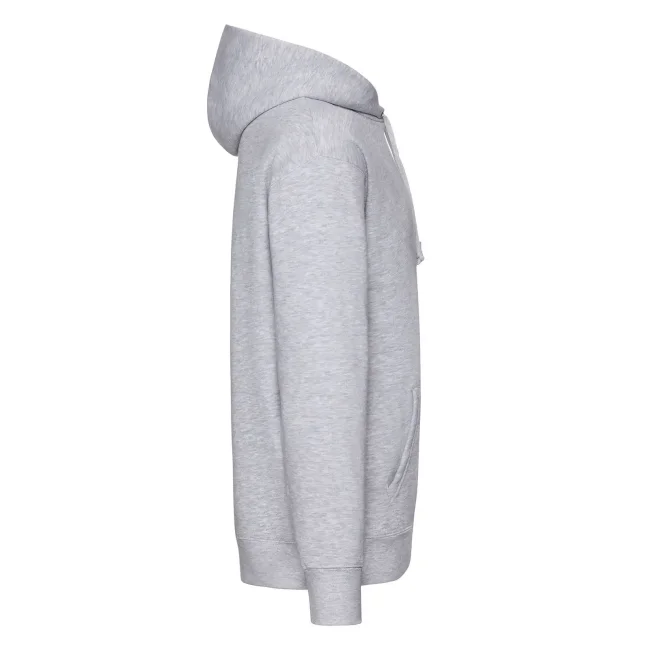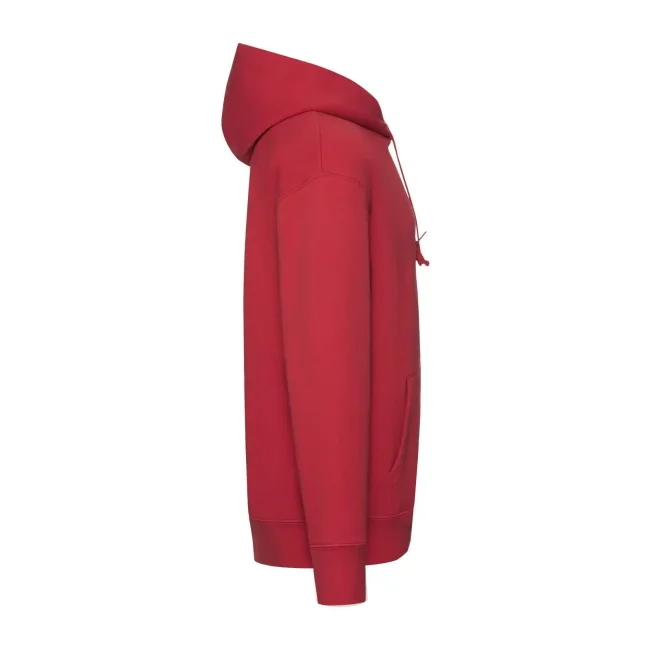 70% cotone, 30% poliestere. Felpa con cappuccio foderato in tessuto, cordino dello stesso colore, tasca a marsupio, polsini e orlo inferiore in cotone/elastan, felpata internamente, struttura con cuciture laterali, maniche set-in. Etichetta removibile. (Col. 94: 260 g/m²).