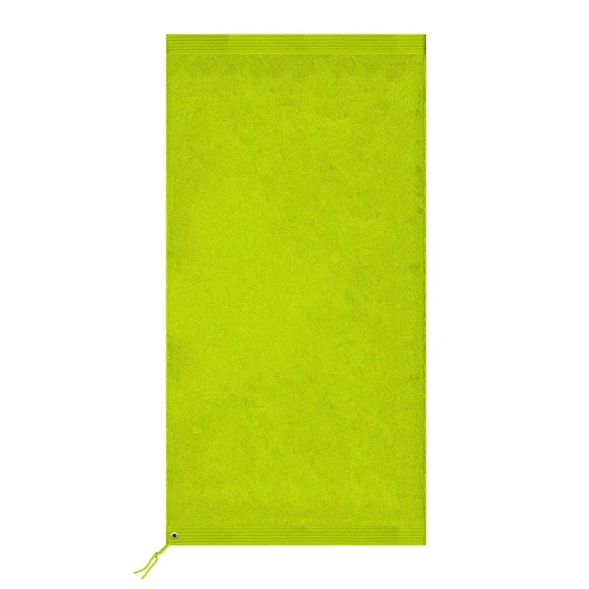 100% cotone. Telo con occhiello laterale con cordoncino tono su tono. Tipi di personalizzazione: ricamo. 4 dimensioni: 30x50cm bordo 4cm - 50x100cm bordo 5cm - 70x140cm bordo 5cm - 100x150cm bordo 6cm.