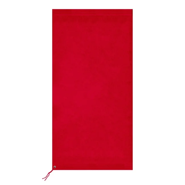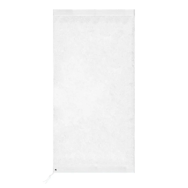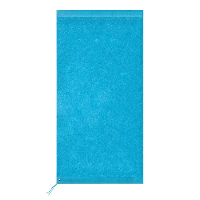 100% cotone. Telo con occhiello laterale e cordoncino tono su tono. Tipi di personalizzazione: ricamo. 4 dimensioni: 30x50cm bordo 4cm - 50x100cm bordo 5cm - 70x140cm bordo 5cm - 100x150cm bordo 6cm.