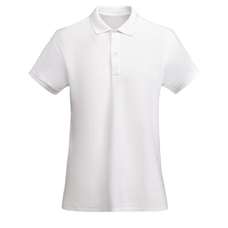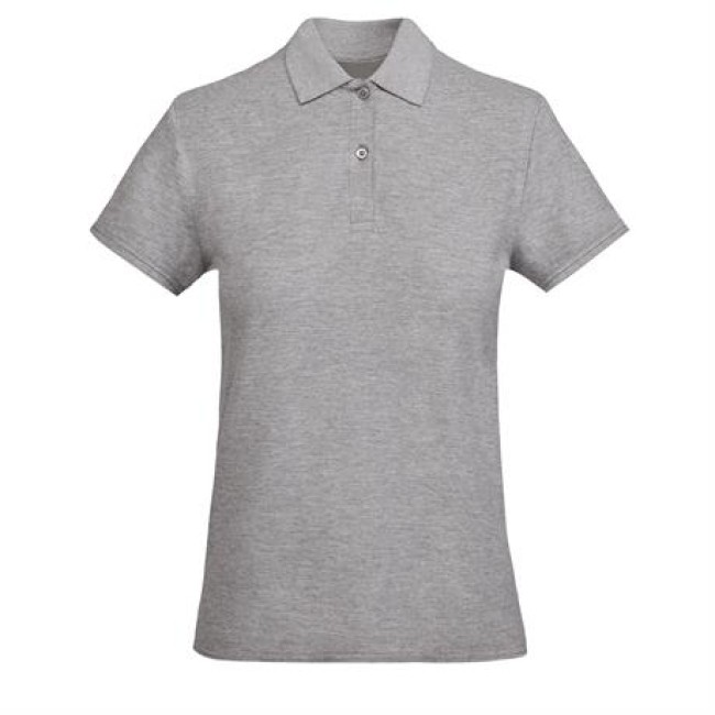 Polo da donna aderente a maniche corte in cotone organico certificato OCS. Colletto e polsini delle maniche in costina 1x1. Chiusura a due bottoni. Copri cuciture rinforzate sul colletto. Spacchi laterali sull'orlo.