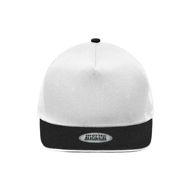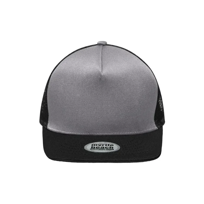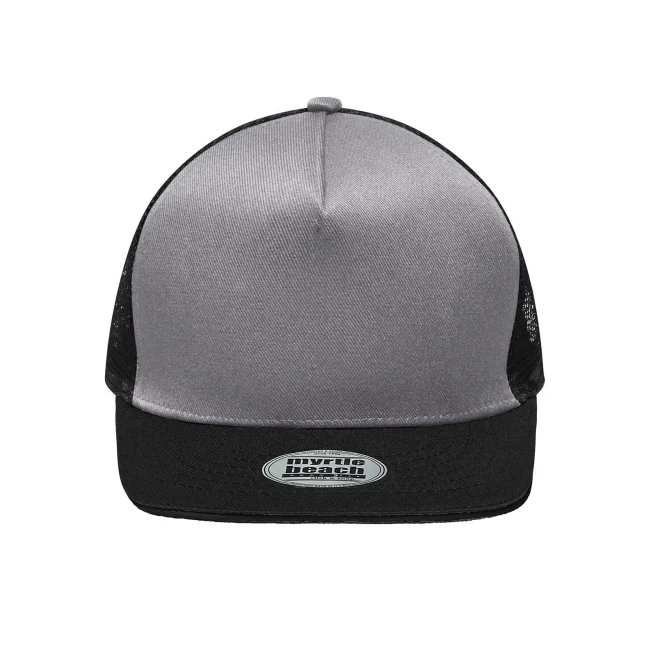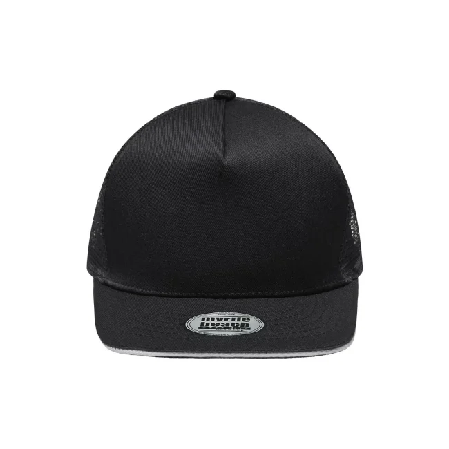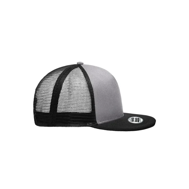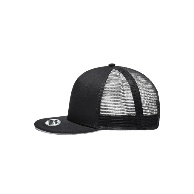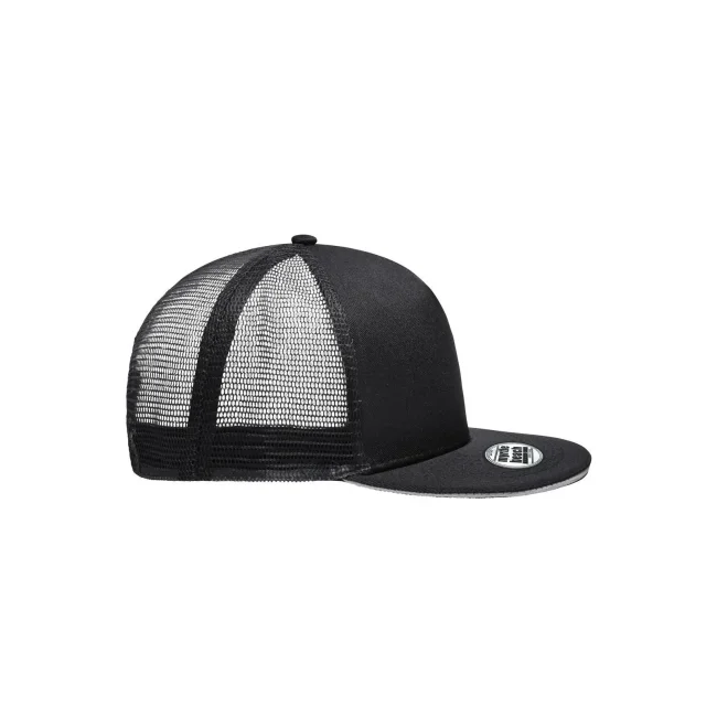 100% poliestere. Berretto in rete con sandwich alla moda Pregiata forma ""High Profile"", Visiera diritta con adesivi e 6 cuciture decorative, 5 pannelli, Pannello anteriore laminato, Massimo comfort grazie alla fascia anteriore imbottita, Chiusura regolabile ""click & snap"".