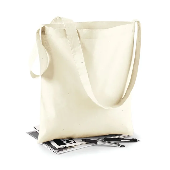 100% cotone. Shopper multiuso. Etichetta removibile. Lunghezza manico: 118 cm, dimensioni: 34 x 40 cm, capacita': 8 litri, area stampabile: 26 x 32 cm.
