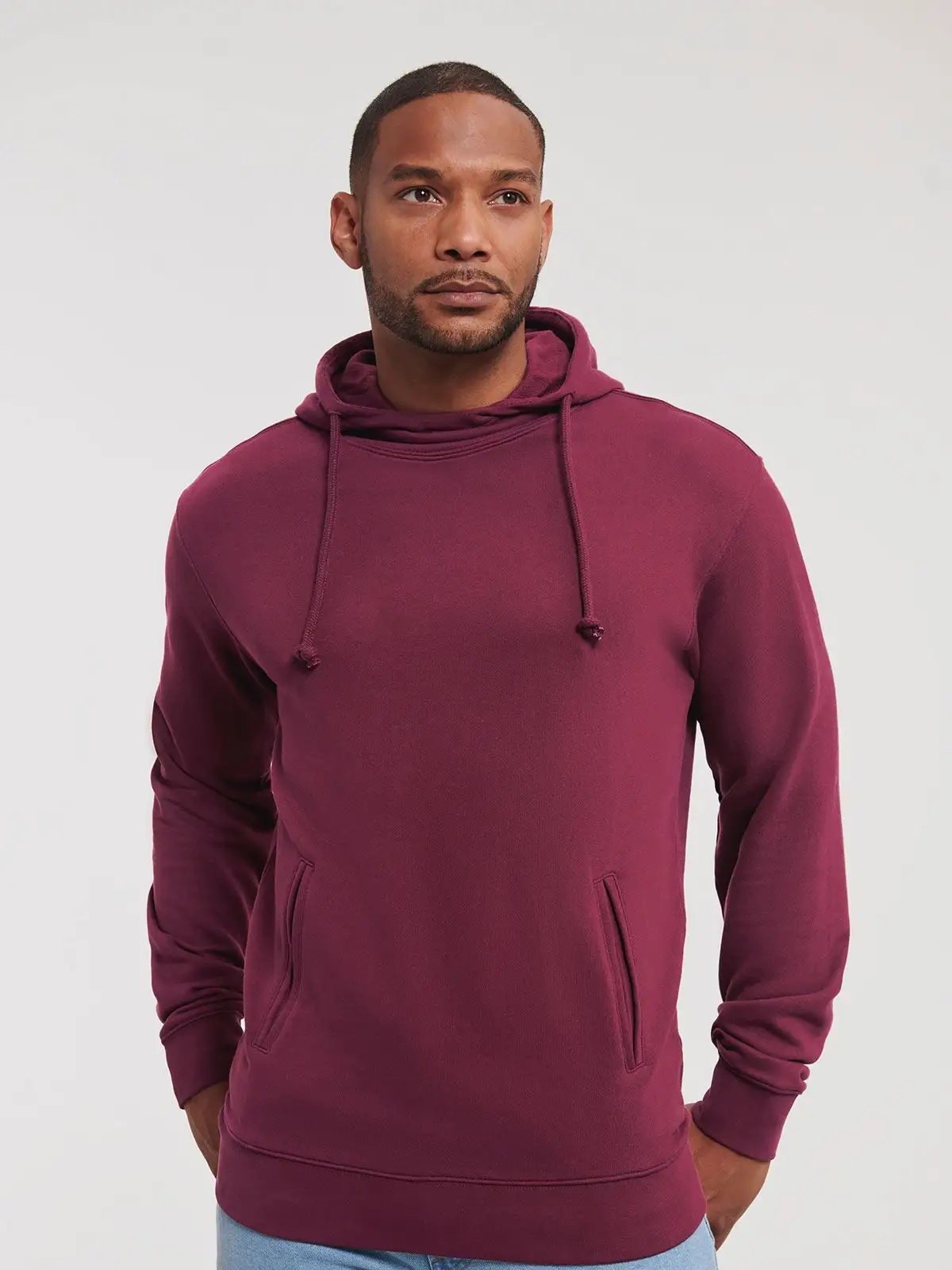 100% Cotone organico (OCS 100). Felpa a collo alto con cappuccio, sgarzata, tasche a filetto dello stesso tessuto, elastane su polsini e girovita, doppia cucitura per una resistenza perfetta, cordoncini in 100% cotone robusto, piccola etichetta senza logo sul collo.