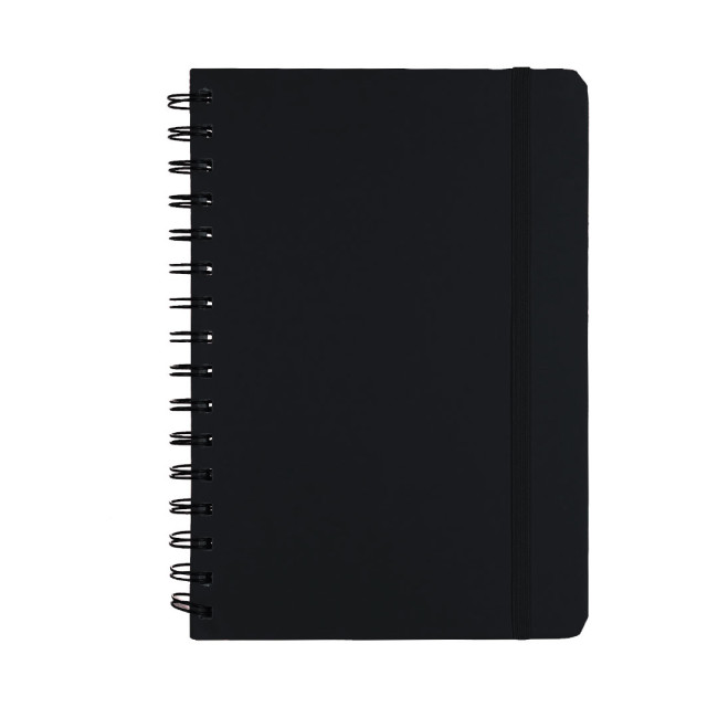 Quaderno ad anelli con copertine rigide realizzate in PU riciclato. Interno con 80 fogli color crema a righe. Include elastico a tono. Con distintivo PU Riciclato.La PU riciclata si distingue per la sua resistenza ed elasticità. Questo materiale riciclato e riciclabile è un'opzione sostenibile che recupera le fibre scartate nei processi di produzione, minimizzando lo spreco di materiale e contribuendo a ridurre l'impatto ambientale, mantenendo allo stesso tempo le proprie proprietà originali.