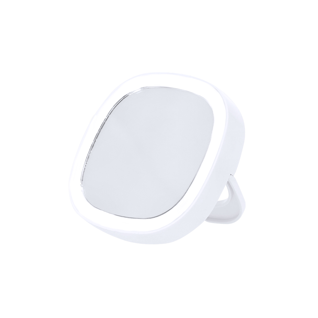 Specchio pieghevole con luce. Con 2 posizioni di luce regolabili e supporto posteriore. Con ingrandimento 1x. Include pulsante ON/OFF sulla parte anteriore. Alimentato a batterie – 3xAAA non incluse. Il suo design compatto e pieghevole ne facilita il trasporto.