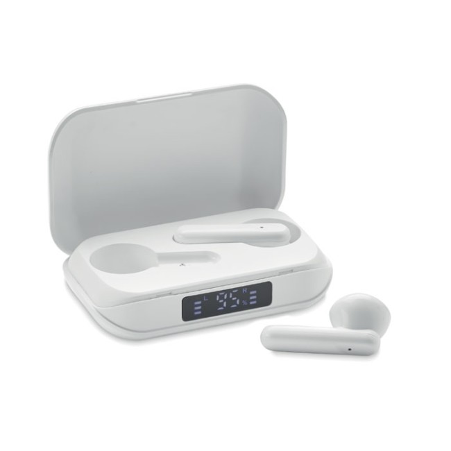 Auricolari stereo True Wireless Stereo, 5.3 in ABS, microfono e batteria da 30 mAh. Display LCD. Associazione automatica. Cavo di ricarica di tipo C e base di ricarica da 250 mAh.