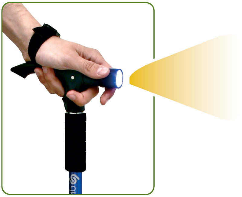 Racchetta da trekking retraibile con lunghezza massima di 110 cm, dotata di luce LED telescopica. Fornita in una pratica sacca da spalla, è un accessorio versatile e personalizzabile per gli amanti dell'outdoor.