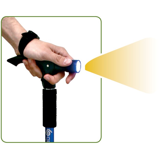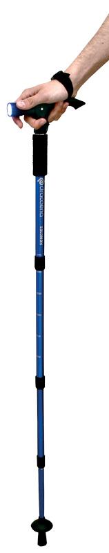Racchetta da trekking retraibile, lunghezza massima 110 cm. Nell'impugnatura luce led telescopica, e' fornita in sacca da spalla.