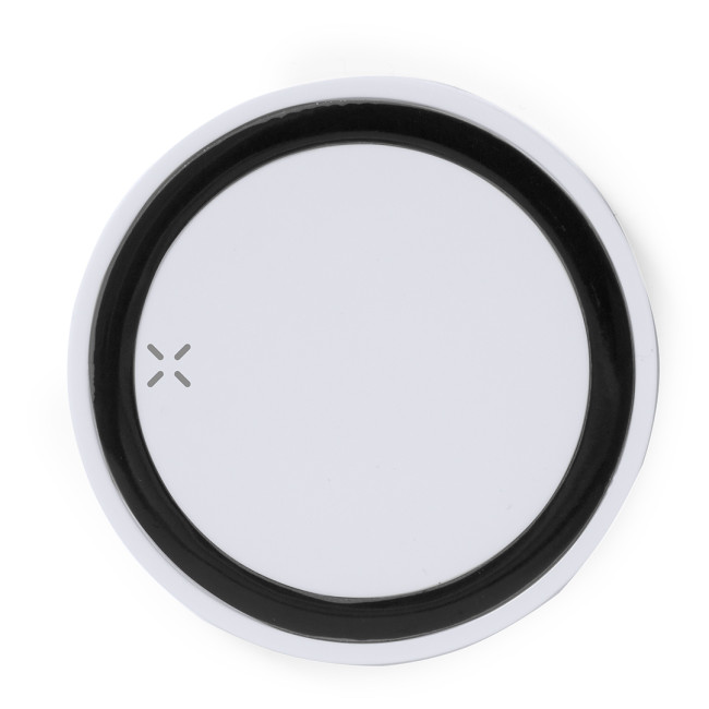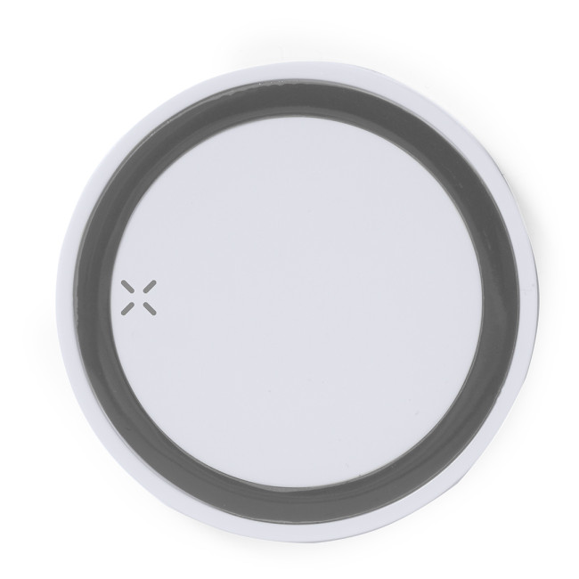 Caricatore wireless circolare con design bicolore. Con base antiscivolo e indicatore di stato di carica a LED. Compatibile con gli smartphone dotati di tecnologia di ricarica wireless e presentato in una scatola dal design accattivante.