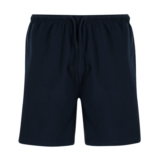 Pantaloni corti unisex in cotone a maglia liscia. Con due tasche laterali e vita elastica con cordino regolabile coordinato.